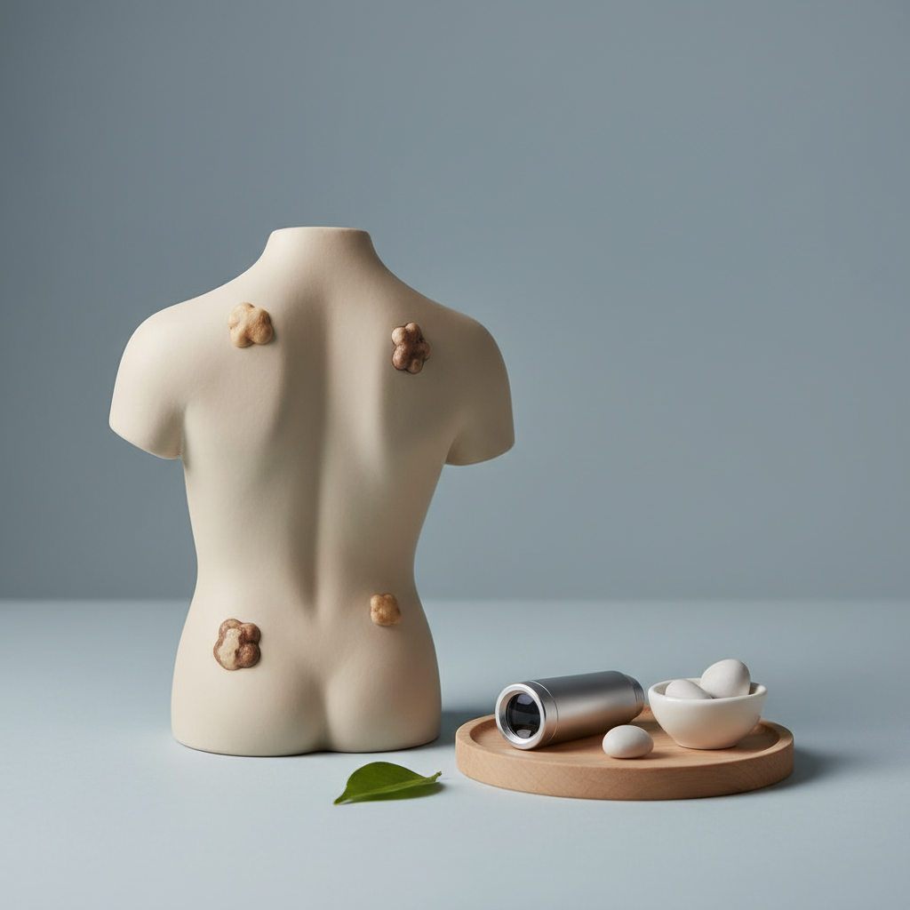 - Nuolatinis traumavimas: Keratomos dažnai atsiranda tose vietose, kurios trinasi į drabužius (liemenėlės linija, juosmuo, kaklas). Nuolat užkliudomas, trinamas ar skutimosi metu pažeidžiamas darinys gali kraujuoti, uždegti, skaudėti ar niežėti. Tokiu atveju šalinimas yra ne tik estetinis, bet ir gydomasis sprendimas.