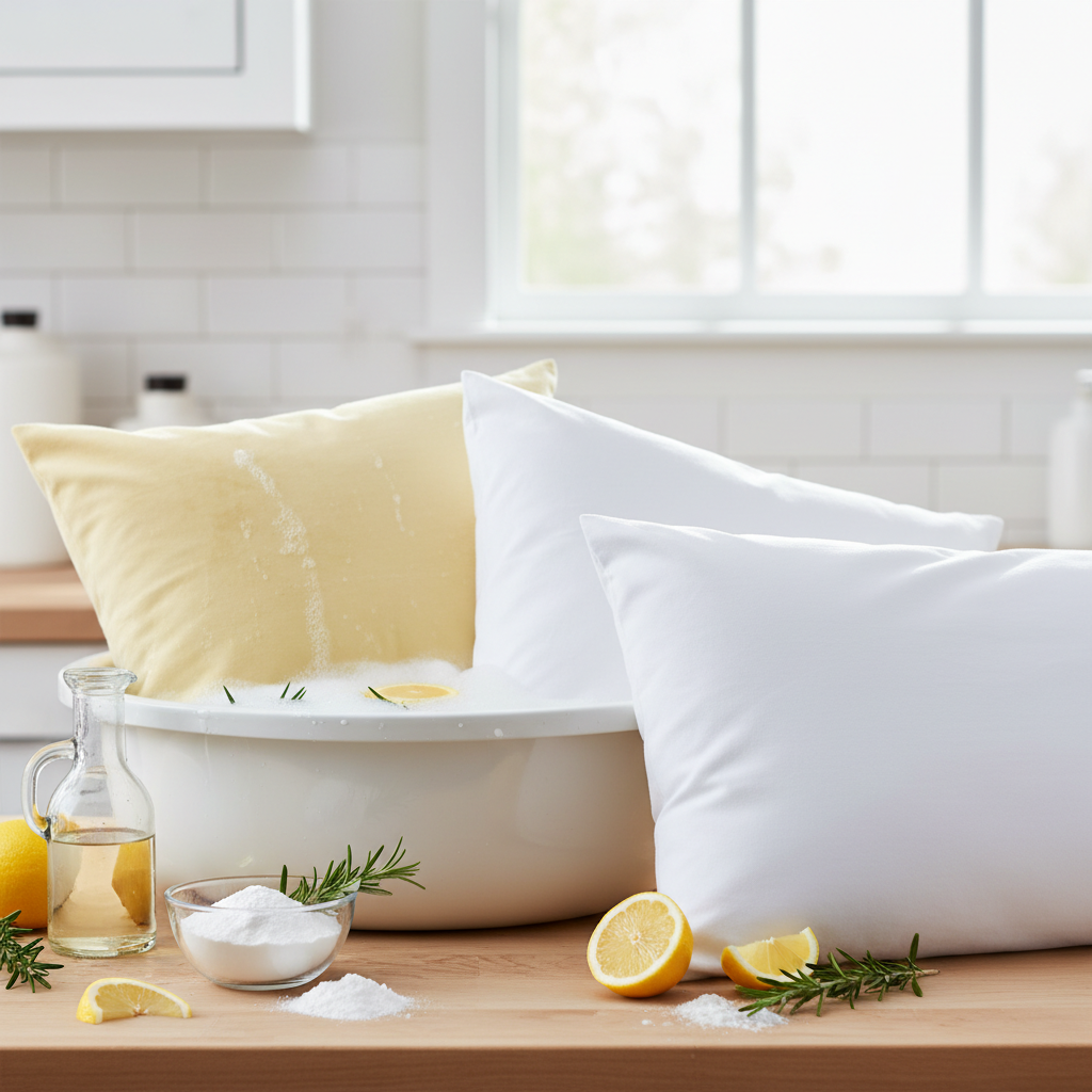 Norint efektyviai išbalinti pageltusias pagalves ir atsikratyti įsisenėjusių kvapų, jums nereikės ieškoti brangių pramoninių baliklių. Viskas, ko reikia, yra sumanus keturių paprastų ingredientų derinys. Šis mišinys veikia kompleksiškai: ištirpina riebalus, neutralizuoja kvapus, pašalina baltymines dėmes ir sugrąžina audiniui švytėjimą.