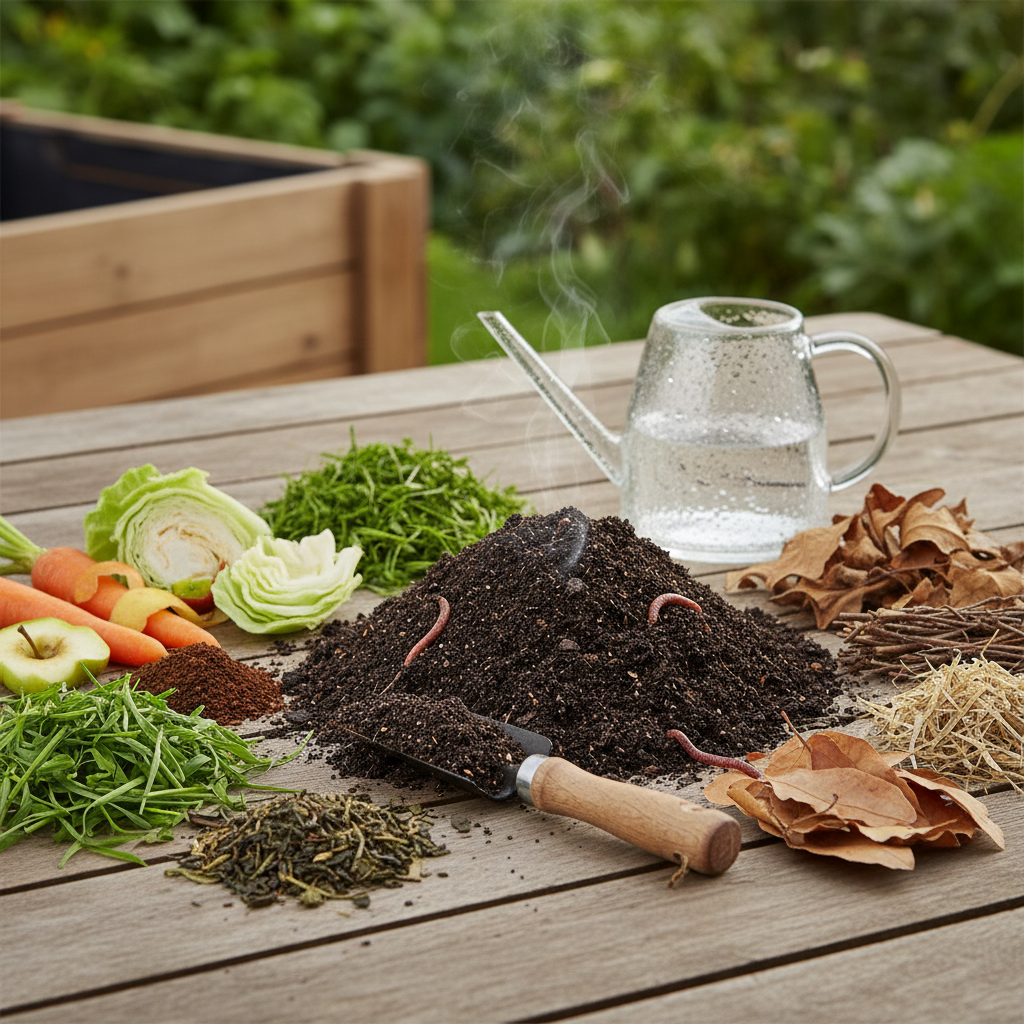 Norint greito, efektyvaus ir jokių blogų kvapų neskleidžiančio irimo proceso, būtina labai tiksliai žinoti, ką dedate į savo komposto krūvą. Visas namų ir sodo organines atliekas galima suskirstyti į dvi pagrindines kategorijas: žaliąsias (kuriose gausu azoto) ir rudąsias (kuriose gausu anglies). Geriausias ir maistingiausias kompostas gaunamas tada, kai šios dvi atliekų grupės yra tinkamai sumaišomos, išlaikant maždaug lygų tūrį arba šiek tiek didesnį sausų, rudųjų atliekų kiekį.