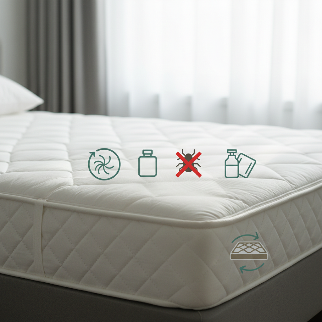 - Gryno oro vonios: Kas kelis mėnesius, ypač saulėtomis ir sausomis dienomis, leiskite lovai pakvėpuoti. Nuimkite visą patalynę, apsauginius užvalkalus ir atidarykite miegamojo langus bent kelioms valandoms. Saulės ultravioletiniai spinduliai veikia kaip natūralus dezinfekantas, padedantis sunaikinti paviršines bakterijas ir pašalinti susikaupusią drėgmę.