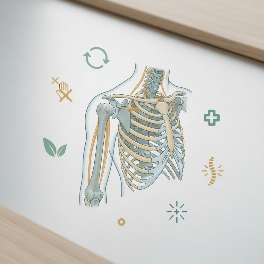 - Tirpimas, dilgčiojimas arba plintantis silpnumas. Jei šie neurologinio pobūdžio pojūčiai prasideda kakle, plinta per petį į ranką, alkūnę ar net pasiekia pirštų galiukus, problema gali slypėti ne pačiame peties sąnaryje, o išvaržos užspaustame kaklo stuburo dalies nerve.